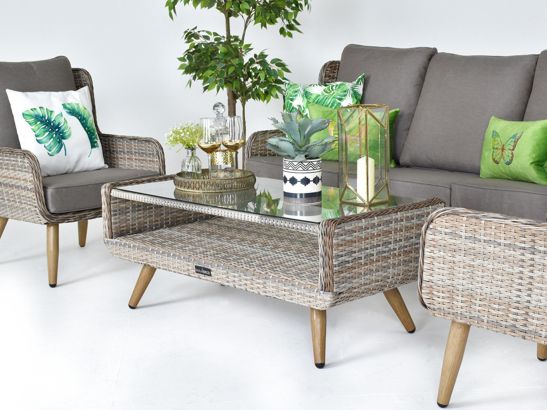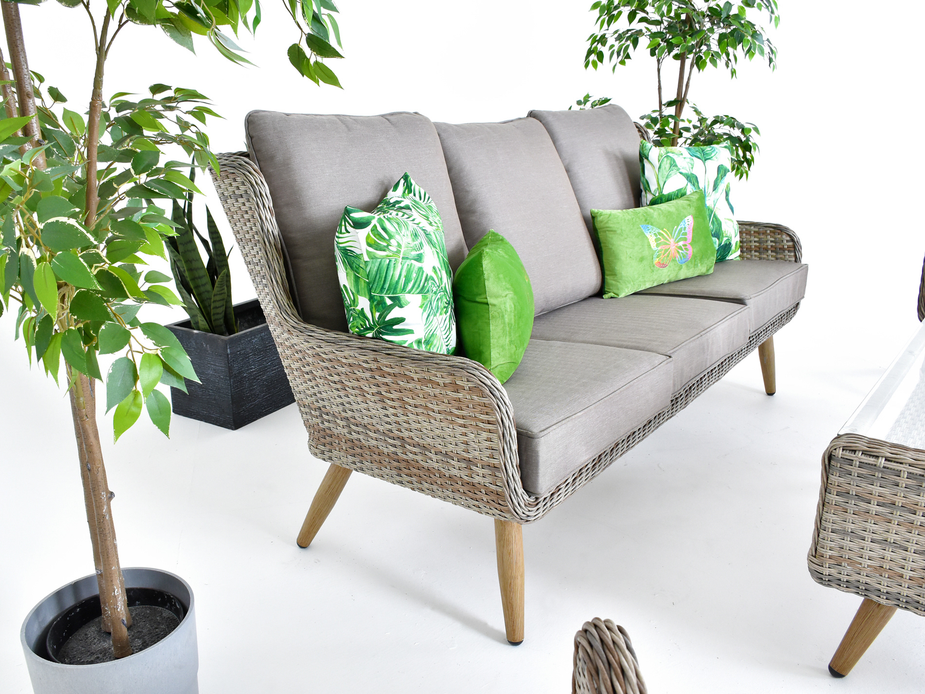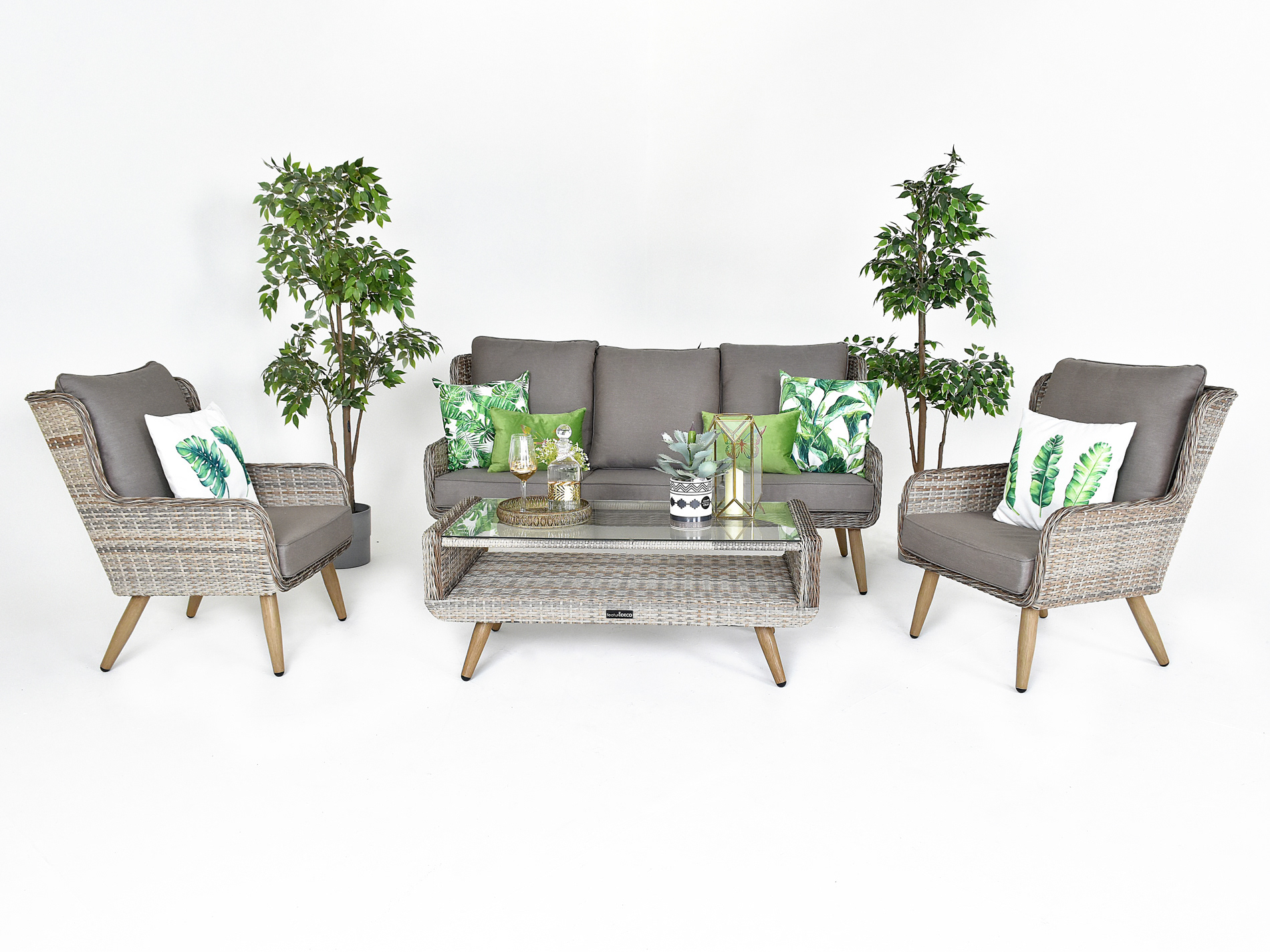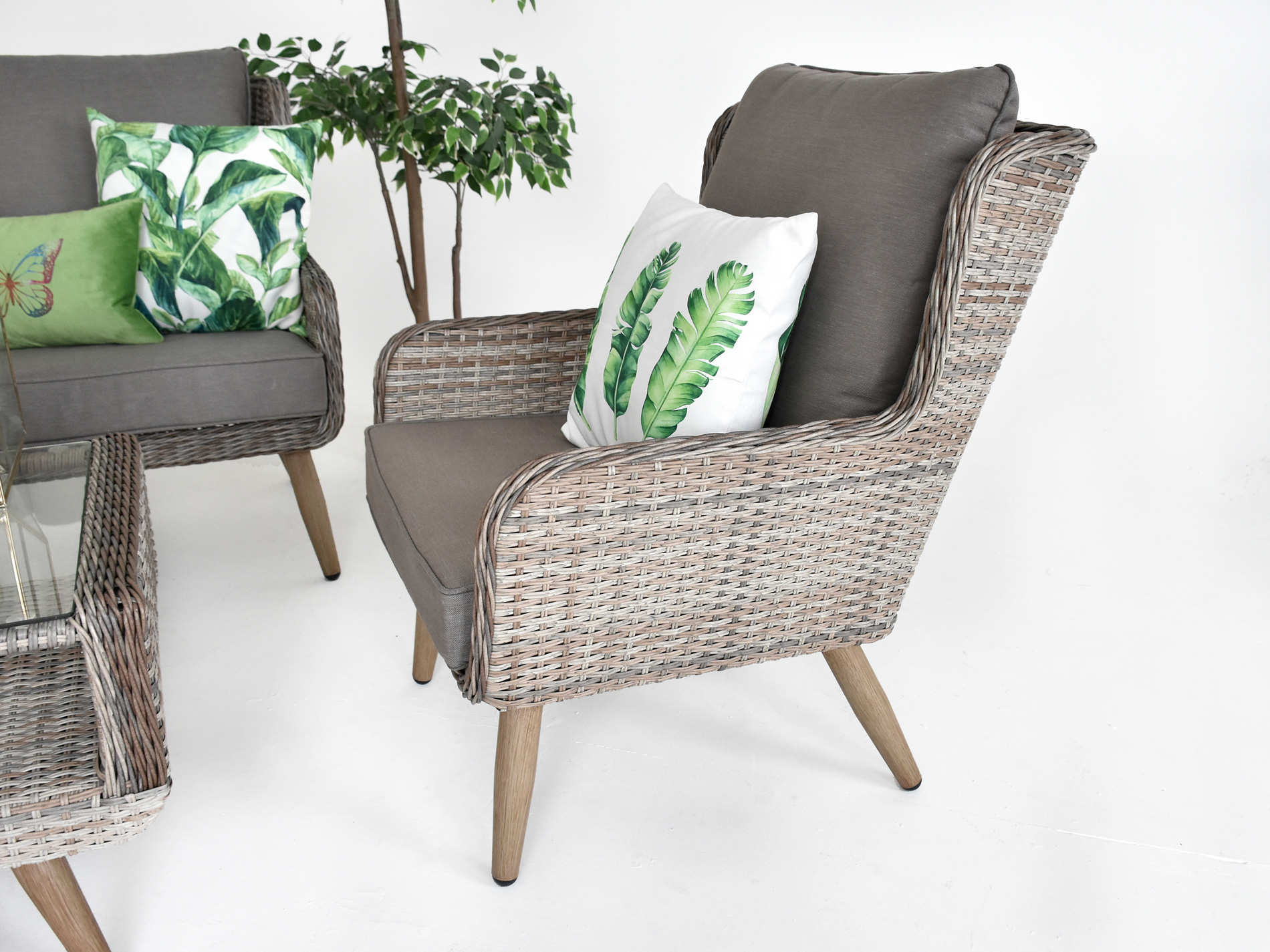 Salisbury Grand Rattan High Back Sofa Set - Khaki Grey