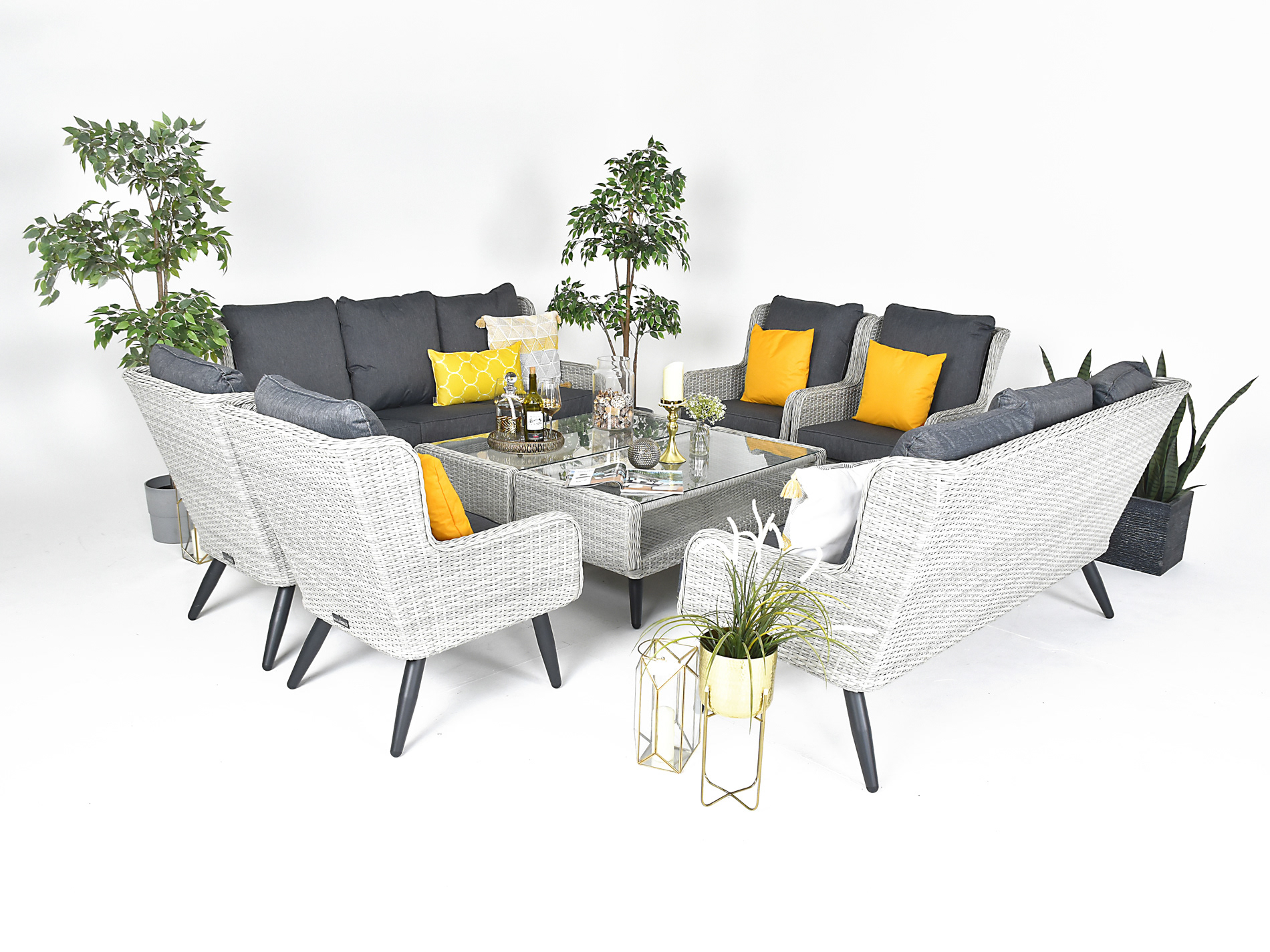 Salisbury Grand Rattan High Back Sofa Set - Oyster Grey