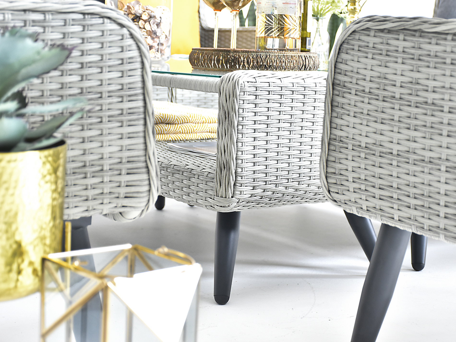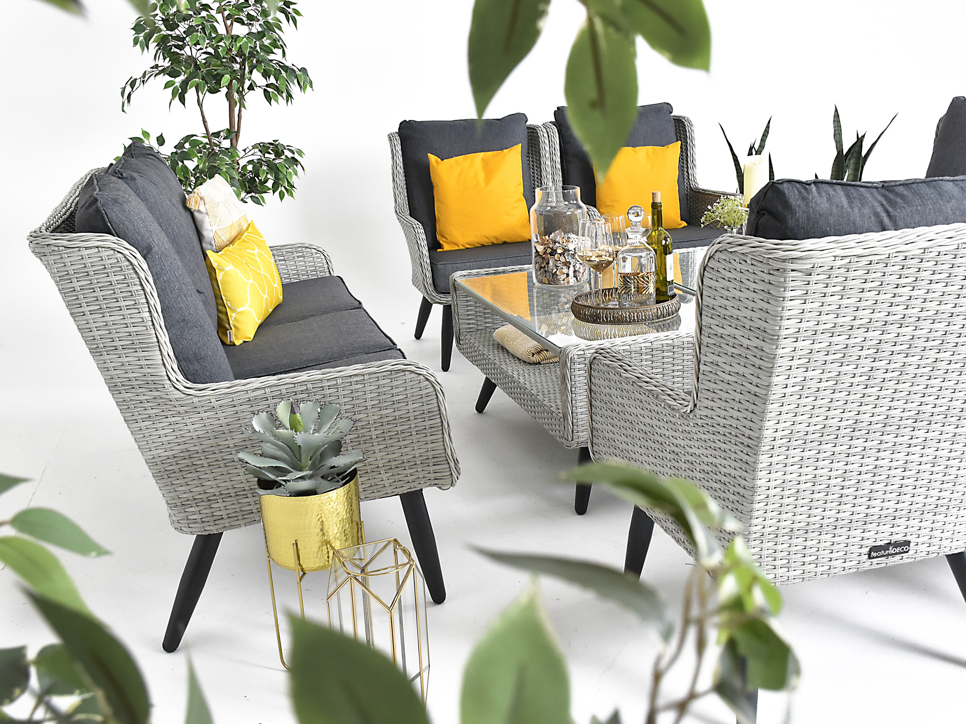 Salisbury Grand Rattan High Back Sofa Set - Khaki Grey